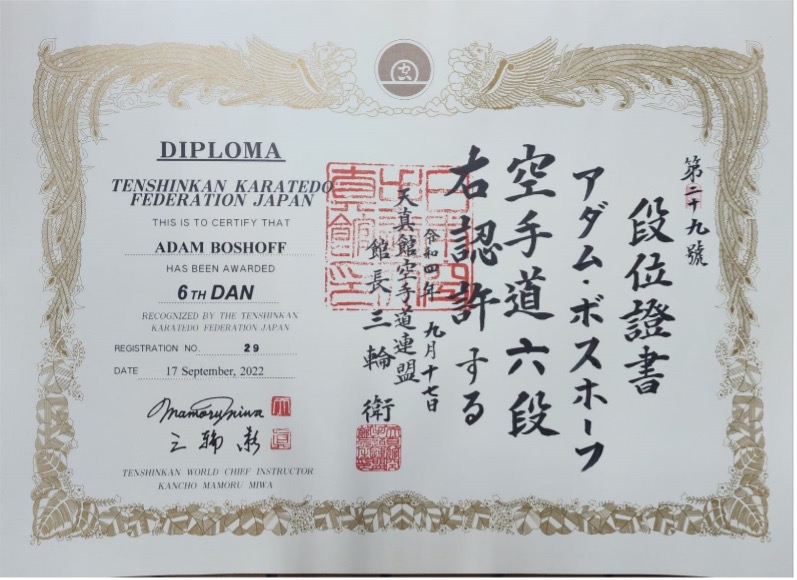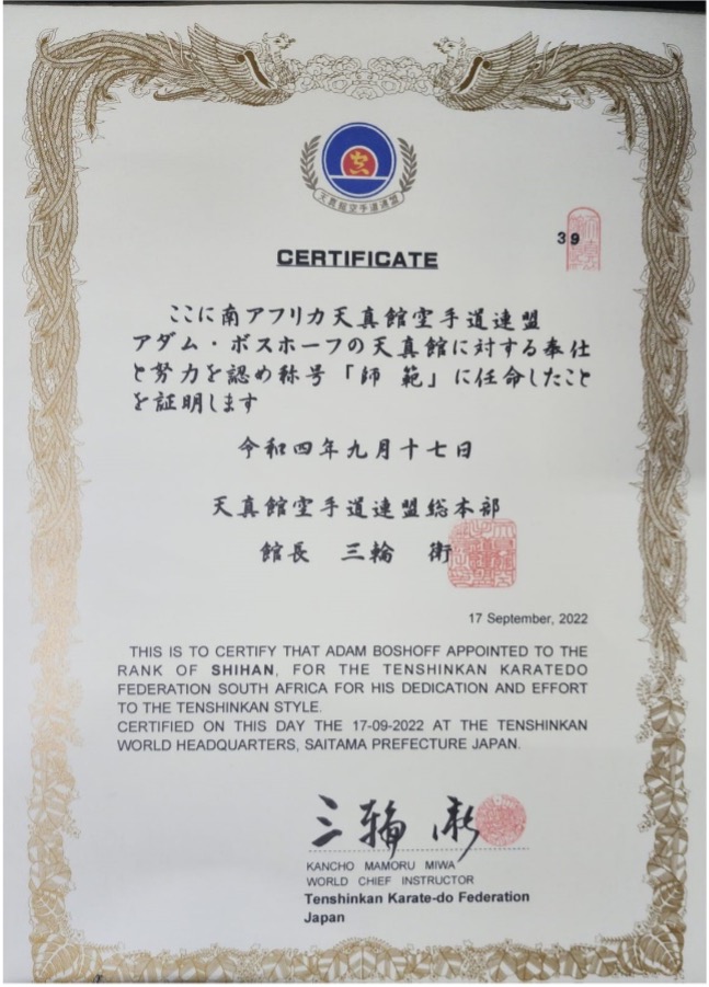 Shihan Adam Boshoff at the All Japan Championship and the Recipient of the prestigious Kancho Cup Award