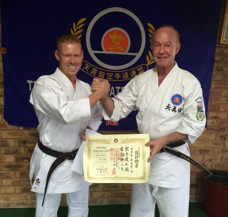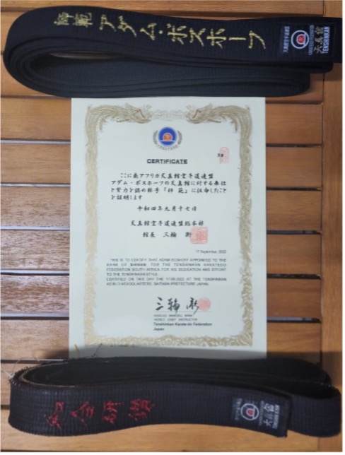 Shihan Adam Boshoff with our late World Liaison Officer & National Chief Instructor Hanshi Hans Haupt.